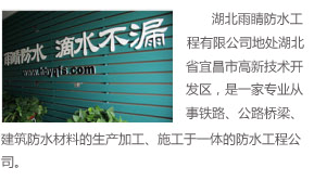 湖北雨睛防水工程有限公司地處湖北宜昌高新技術(shù)公司獲得了國家質(zhì)量管理體系認(rèn)證證書,也取得了湖北省建筑防水材料專業(yè)協(xié)會(huì)會(huì)員資格;并榮獲了湖北省建設(shè)廳頒發(fā)的建筑施工貳......[更多]